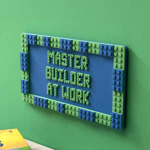 It's LEGO-compatible too! Add LEGO bricks to customise and make it unique. Perfect for playrooms, DIY areas, or anywhere creativity is flowing, this sign is both practical and fun. Let your inner builder shine with the "Master Builder at Work" Wall Sign.